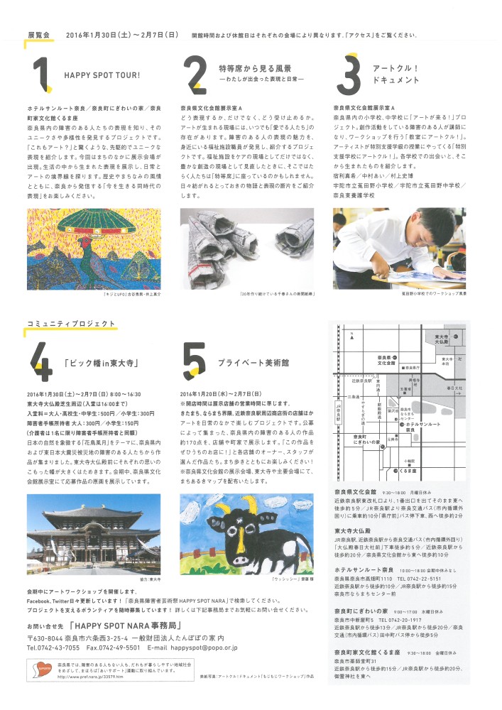 2016年1月30日(土)~2月7日(日)、奈良県障害者芸術祭HAPPY SPOT NARA2015-2016が開催されます。